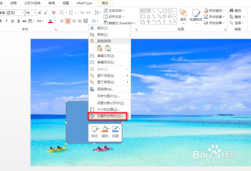 紧接着,选中矩形图形,鼠标右键,选择“设置外形格局”,具体如下图所示: