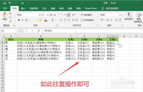 4:粘贴后点击下面一个单位格,按Ctrl+E快速信息提取并填充