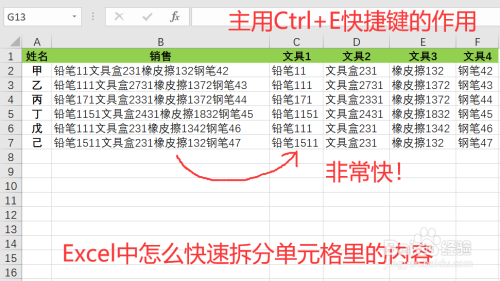 科普:Ctrl+E是Excel中一个主要的快捷键,像文本拆分,信息提取,信息归并,调整格局以及提取文字中的数字都可以经由过程这个快捷键来实现。