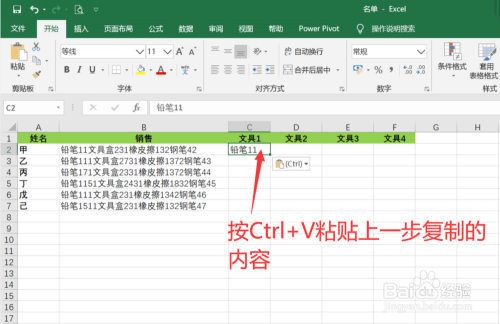3:按Ctrl+V将上一步复制的内容进行粘贴到同业一个位置