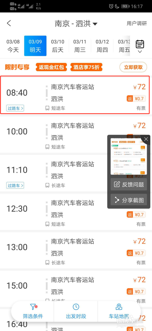 之后选择车次,如图所示。