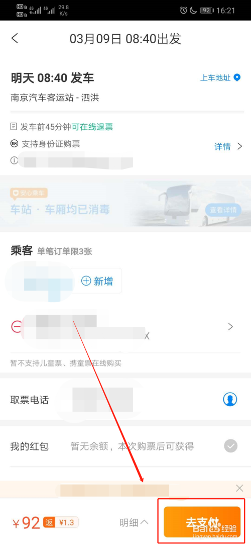 6、之后添加乘客和手机号;
