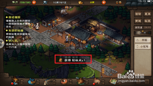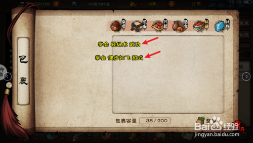 然后您就获得了【轻纵术】,再点击底部的【武功】图标。