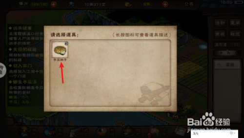 接着在背包里拿出【冬瓜种子】,冬瓜种子可以买,也可以在同期使命中获得。