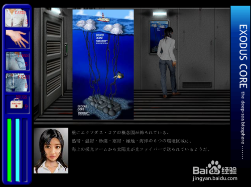 达到B栋,刚走进L型走廊时听到节制室传来鲍勃的惨啼声。来到节制室,发现地上多出了很多血迹。先去医务室打开药品柜拿到药箱和消毒酒精。出医务室,顺着血迹深切,在墙上看到一张水下尝试室的概念海报,知道水下尝试室确实有6种情况区域,经由过程海平面上的穹顶采光供能。再打开门,进到动力室。