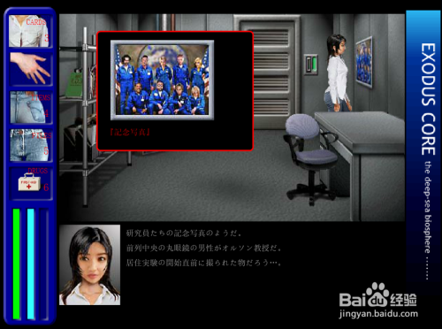 来到索菲亚的房间,在抽屉里拿到药品柜的钥匙(若是茅厕的钥匙没拿的话这个抽屉就打不开,拿不到药品柜的钥匙是不克不及触发后面的剧情的),地上拿药箱,在墙上看到全体9人下水之前的纪念照,知道前排中心戴眼镜的汉子就是奥尔森传授。