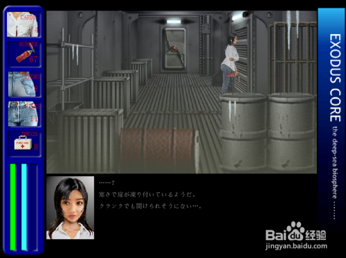 回到动力室,发现楼梯上的门可以用撬棍打开,进去查看门边上的大机械,这貌似是原子炉的监督器,门边上有一条滴血的触手,像是环绕纠缠在舱门上的。再进去里面的门,走到头打开舱门进去,发现一个被冰住的女人,上前查看可以知道她就是索菲亚,她被排水管道的排泄液给冻住了,可是没死,只是晕曩昔罢了,查看她旁边的窗口能发现海底还有一个圆顶状物体,申明基层还有处所。