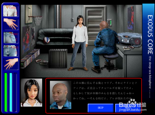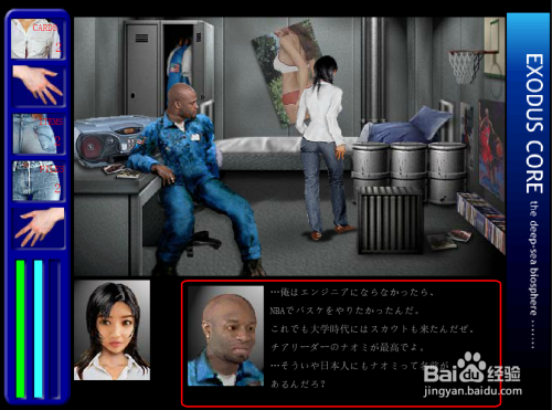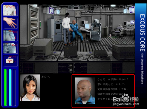 和黑人的对话中领会到,黑人名叫鲍勃·格兰特(就是适才拿到的补缀笔记的笔者),是水下尝试室负责硬件的工程师。他接着也说了一些这里发生的工作:大要十多天前,景象形象学家迈克尔·乔伊斯在水下这个闭锁施设中神秘掉踪了,怎么找也找不到,别的情况区域的菜园和地下仓库的一些食材也消逝了,再接着朝本土求救的时辰无线机也坏了,残剩的食材已经不多,大师都在争抢。再后来,B栋的安娜、艾伯特、奥尔森传授三小我也都不见了,B栋住人只剩下查尔斯,但鲍勃最后一次看见他也仍是三天前的工作了。A栋仅剩鲍勃、凯恩、玛利亚、索菲亚四小我,大师都思疑是查尔斯杀了掉踪的那几小我。就在三天之前,他们四个在餐厅用冰箱里仅剩的一些食材做饭吃,查尔斯没有来,索菲亚说去B栋叫他,却再也没有回来。昨天他们三个吃饭的时辰,“那个工具”呈现了,它从天花板的裂缝中窜出触手把凯恩打飞到了餐厅的角落,玛利亚和鲍勃两小我都很尽力的逃跑,鲍勃逃回了房间临时保命,玛利亚却存亡不明(游戏起头时就知道玛利亚和查尔斯都死在舱门口)。最后,鲍勃说他要待在房间里,哪里也不去。