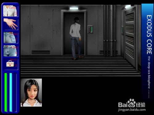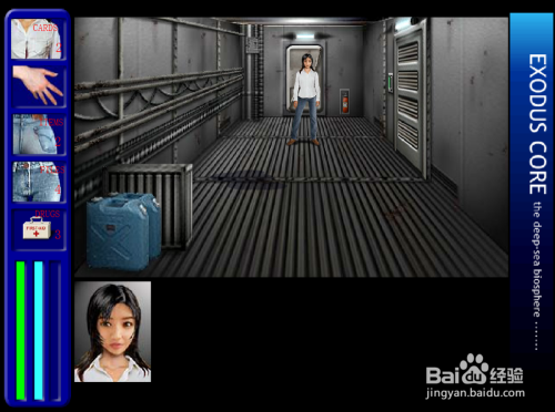 出尝试室,继续沿着走廊走,拿墙上的地图,之后进到最里面的房间,看到一个梯子爬上去,来到B栋,打开舱门出去。