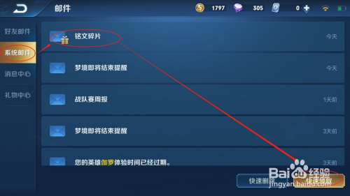 第五步:铭文奖励会发送到邮件,找到系统邮件,点击领取,如图
