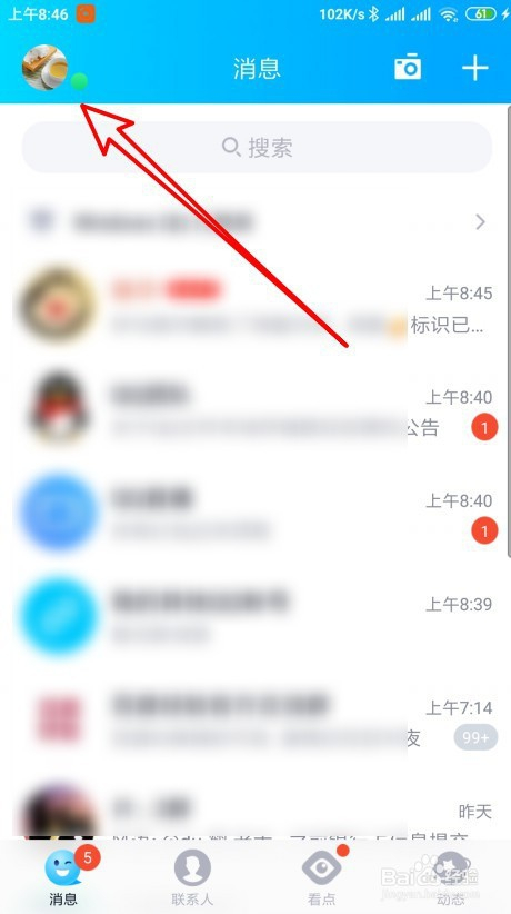 2、然后再打开到手机QQ软件本家儿界面点击左上角的本家儿菜单按钮。