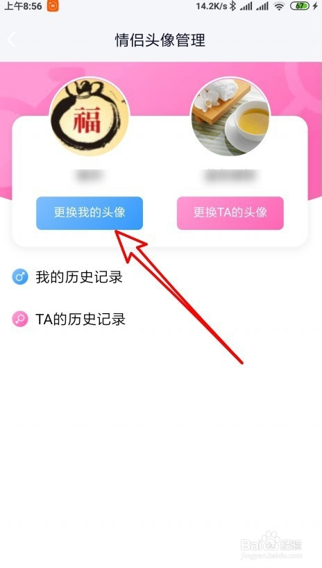 6、然后就会打开QQ情侣空间的设置页面,点击情侣头像的菜单项。