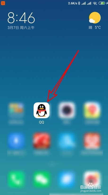 1、在手机屏幕上点击手机QQ的图标。