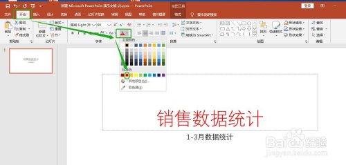 第五步:在起头里面找到颜色设置选项,好比设置为红色,如图