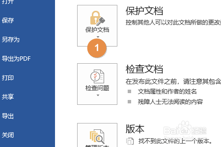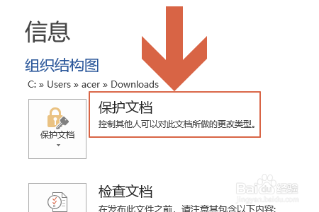 然后就会在软件左侧弹出一个窗口,此中的“信息”选项卡下就能看到“庇护文档”选项;