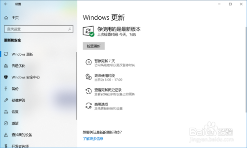 进入 设置 - Windows 设置 - 更新和平安 - Windows 更新,点击:查抄更新;