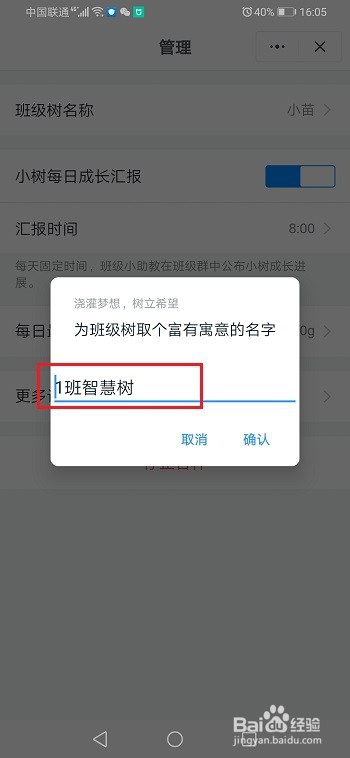 第五步班级树更名之后,再设置方针,设置种一棵树为方针,然后让班级群的同窗浇水,就可以丛林班级称号,如下图所示:
