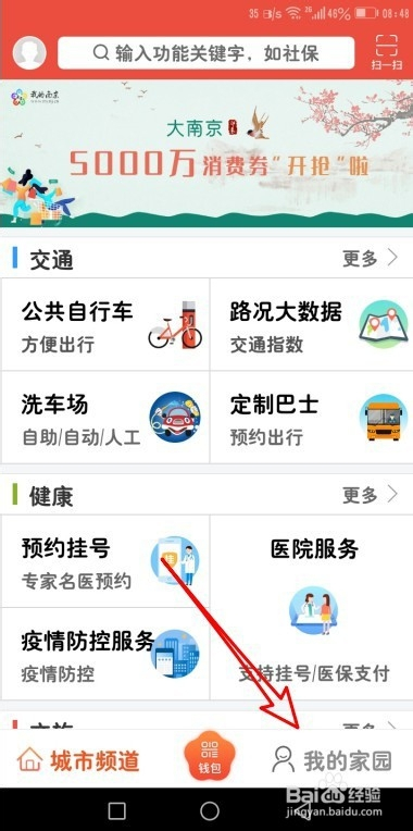 返回到我的南京本家儿界面,点击消费券申请的图标。