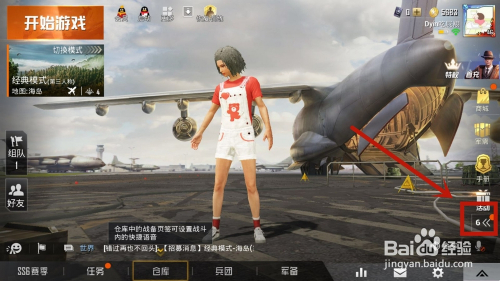 1.打开和平精英,点击右下角的箭头。