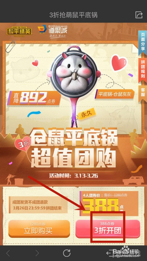 2.点击3折团购皮肤,再点击3折开团。