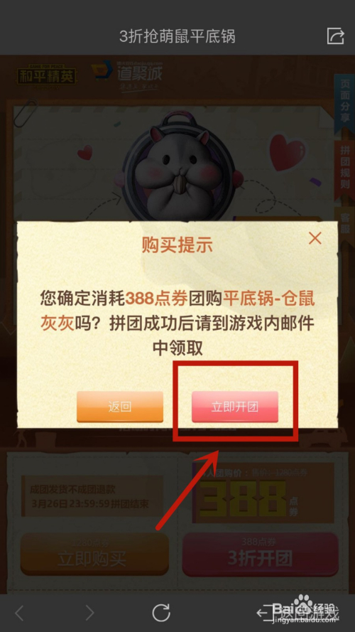在弹出的小框中,点击当即开团,即可。
