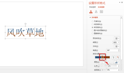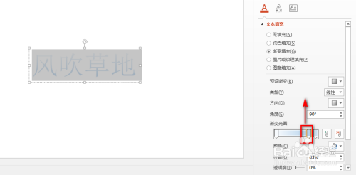 在右侧呈现的界面中,点击“文本选项”,然后全选文本内容,接着点击“渐变填充”,同时设置一种渐变颜色,具体如图所示:
