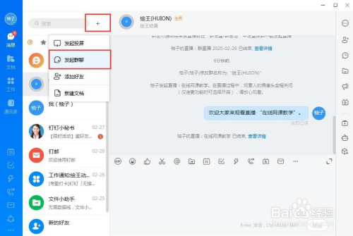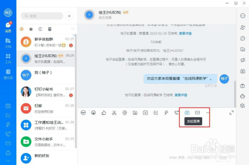打开“钉钉”软件,倡议群聊,在群组内倡议直播,直播模式选择“屏幕分享模式”,可以展示电脑桌面。