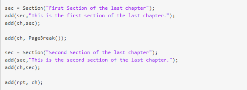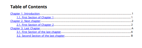 建立两个由分页符分隔的部门,并将它们添加到陈述中以演示最后一章的页码。