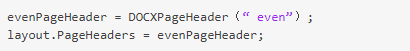 建立一个题目并将其添加到当前页面结构。将标头的类型设置为even,使其仅包含在文档的偶数页上。若是文档是PDF文档,请建立一个,PDFPageHeader而不是DOCXPageHeader。