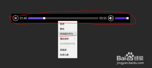在黑色方框中右键,会呈现“将音频另存为”点击另存为定名即可