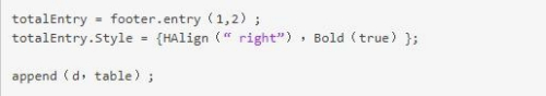 经由过程HAlign在条目标Style属性中包含一个对象,将页脚的“总计”条目设置为具有准确的程度对齐体例。要使条目加倍凸起,请添加一个Bold对象。
