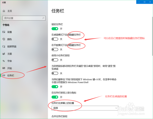第五步,在-使命栏-一栏里,我们可以设置电脑的底部使命栏的具体设置,包罗是否锁定、是否埋没、是否快速浏览、是否启用快捷键和使命栏的位置显示等等,依据小我爱好设置即可。