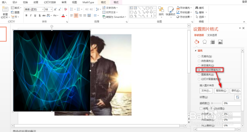 选中非人物图片,Ctrl+X进行剪切,接着选中矩形,鼠标右键,在呈现的下拉菜单中点击“设置外形格局”,在呈现的右侧界面中,选中“图片或纹理填充”,然后点击“剪贴板”,具体如图所示: