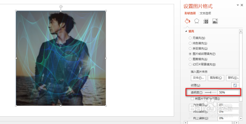 紧接着调整右侧界面的“透明度”,最后可以获得一张融合后的有必然结果的图片,具体如图所示: