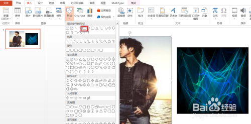 在“插入”选项卡下找到并点击“外形”,选择矩形外形,具体如图所示: