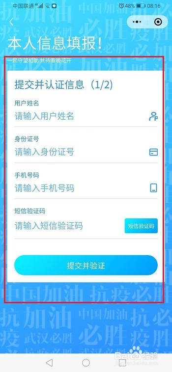 第五步进去武汉通实名认证界面,填写信息,进行提交认证,就当作功实名认证了