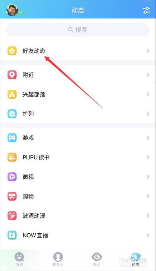 然后在点击“老友动态”,