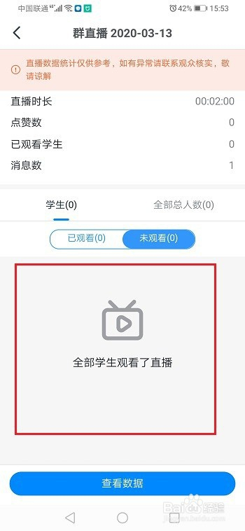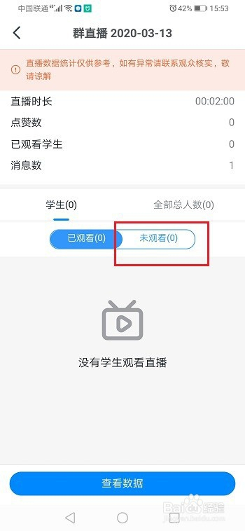 第五步点击未不雅看之后,可以看到哪些学生没有不雅看直播,如下图所示: