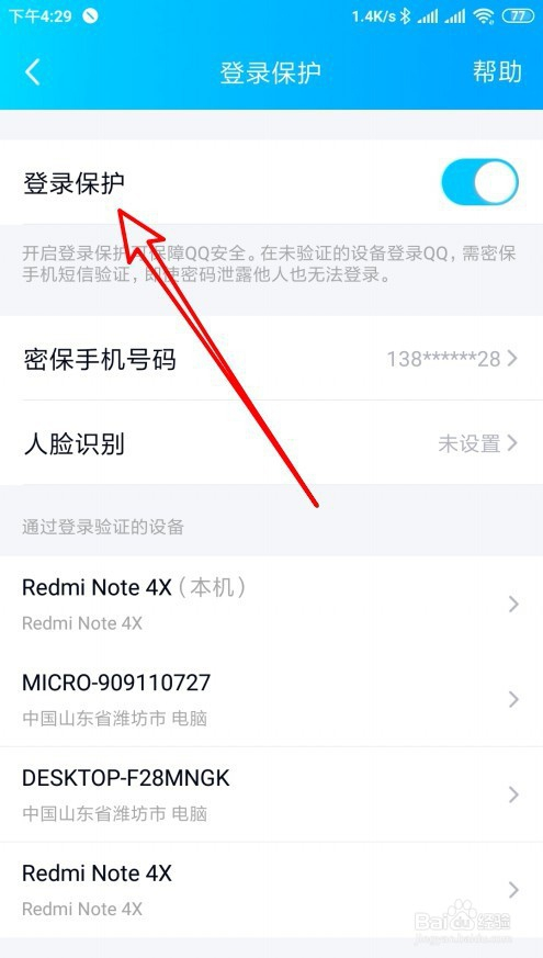点击该设置项后面的开关,然后在弹出简直认要封闭登录庇护的窗口中点击“封闭”按钮即可。