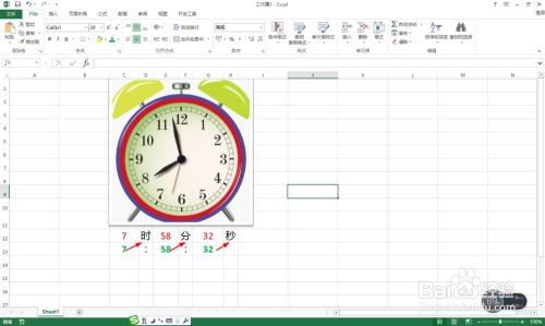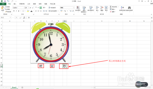 别离在D12、F12、H12三个单位格输入:时、分、秒。写上中文表达时候的体例。