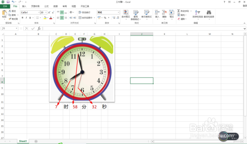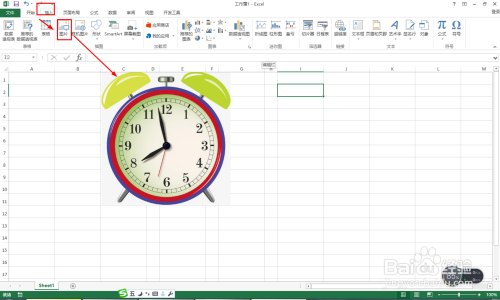 打开EXCEL,新建一个空白文档——点击插入——图片——插入一张钟表图片。