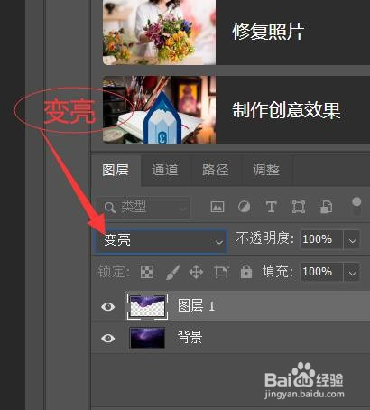 接着将图层的图层模式更改为:变亮,然后双击鼠标左键,或者点击键盘【Enter(回车)】键进行确定,如图