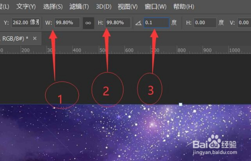 接着执行【编纂】→【自由变换】,或者利用快捷家【Shift+T】进行自由变换,然后在上方东西栏中将W和H更改为:99.8,将角度更改为:0.1,如图