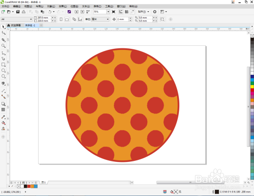 点击【编纂填充】,按图示将图案颜色设置为橙色和黄色,这样我们的橙黄圆形图样填充就建造完当作了。