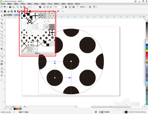 选择【黑色圆形图样】,对图案进行图样填充并调整好填充间距;