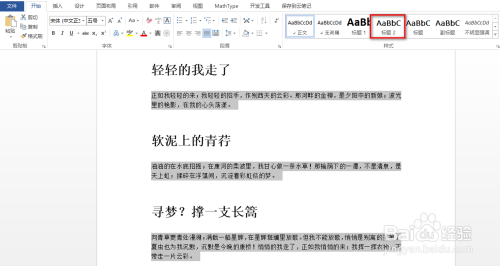 同样地,选中全数的正文部门,在“起头”选项卡下找到并点击“题目2”,具体如图所示: