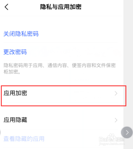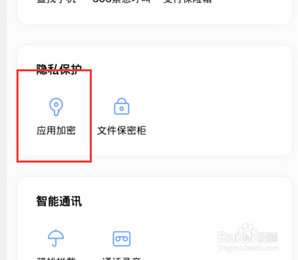 第三:选择【隐私庇护】下面的【应用加密】功能。
