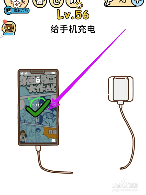 5.最后如下图所示,手机充电当作功即可过关。