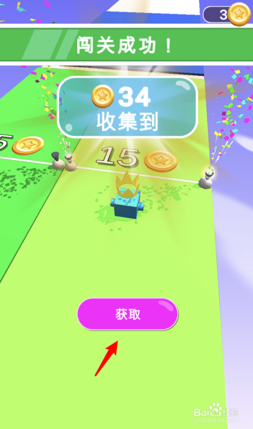 闯关当作功后,点击下方的获取选项,可以领取金币奖励。