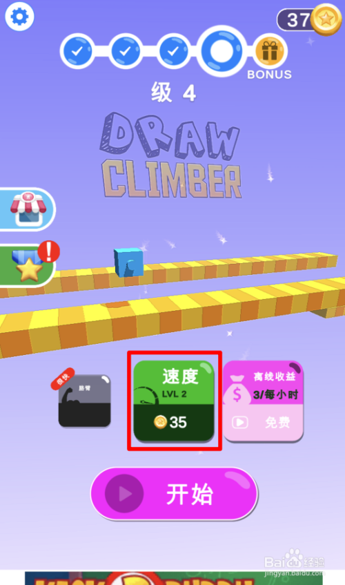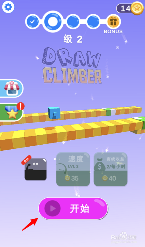1.打开手机的画腿攀缘游戏后,点击本家儿界面的起头选项。